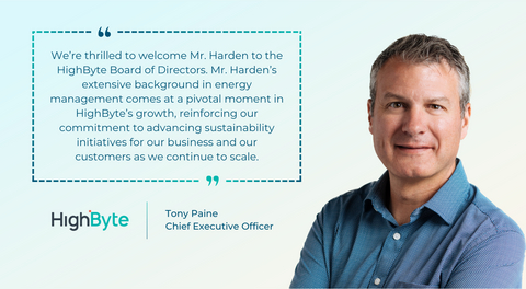 “We’re thrilled to welcome Mr. Harden to the HighByte Board of Directors,” said Tony Paine, Chief Executive Officer (CEO) at HighByte. “He joins an exceptional group of accomplished technology and business leaders who bring decades of insight across product innovation, strategic investment, and market expansion. Mr. Harden’s extensive background in energy management comes at a pivotal moment in HighByte’s growth, reinforcing our commitment to advancing sustainability initiatives for our business and our customers as we continue to scale.”